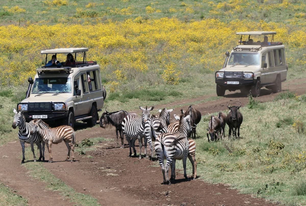 Traveling to Ngorongoro is like driving through a living canvas of nature's finest work. The way is full of stunning, open plains that stretch endlessly, painted in soft greens and golds under the African sky. Along the road, life moves with a calm rhythm—herds of cows graze peacefully alongside wildebeest and zebra, sharing the same space in perfect harmony. This is more than just a road trip; it’s an experience of one ecology. You can feel the delicate balance of nature as traditional Maasai pastoral life blends seamlessly with wildlife. There’s a raw, organic beauty in how everything coexists—the land untouched, the animals undisturbed, and the people in tune with the earth. The journey to Ngorongoro isn't just a way to get somewhere. It's a moving introduction to the crater's deeper story: one of connection, coexistence, and the quiet majesty of the natural world.