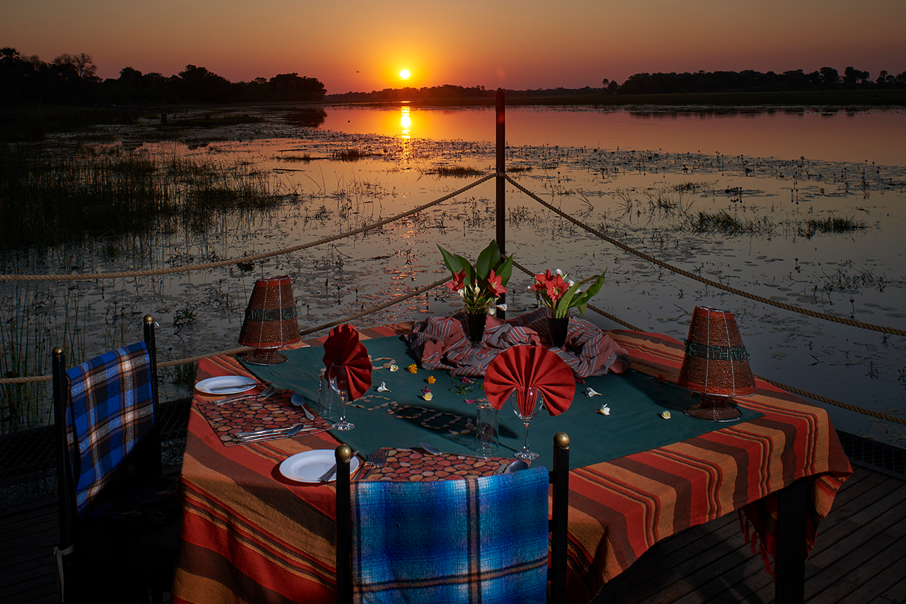 I have been to the Okavango Delta a number of times and I must be honest, each time I return, I am blown away. The closeness of nature, the sounds of the bush, the little surprises (elephant in camp), encountering a leopard on the way to the airstrip (when you think that the game viewing is over and nothing more exciting could happen) and the surprise bush dinner under the stars. In May 2016 I visited a few places in Botswana (not my first visit) and still I was excited as if it was my first visit. We flew into the airstrip, excited as children. The birding in the Okavango Delta is brilliant, from malachite kingfishers to African Fish Eagles. The bird chatter in the morning is an exciting a teaser of what is to come. The Okavango Delta is seasonal and activities depend on the water levels. I loved the remoteness of the area, and the low numbers of other safari goers. This is key because that is what Botswana is all about, low volume and high quality. When choosing a camp you should take special note if they are land only, water only or a combination of land and water. The variety of activities is important (mokoro, walking, boating and game drives). Whilst the activities provide the opportunity to enjoy Botswana wildlife and bird life, remember to take time to simply sit and relax in this beautiful area. Other highlights of my visit included dipping my feet in the cool, crystal clear waters of the Okavango Delta, dining under the stars in the bush, gliding through the water in a mokoro and watching the sky change colour as the sun set behind the horizon.