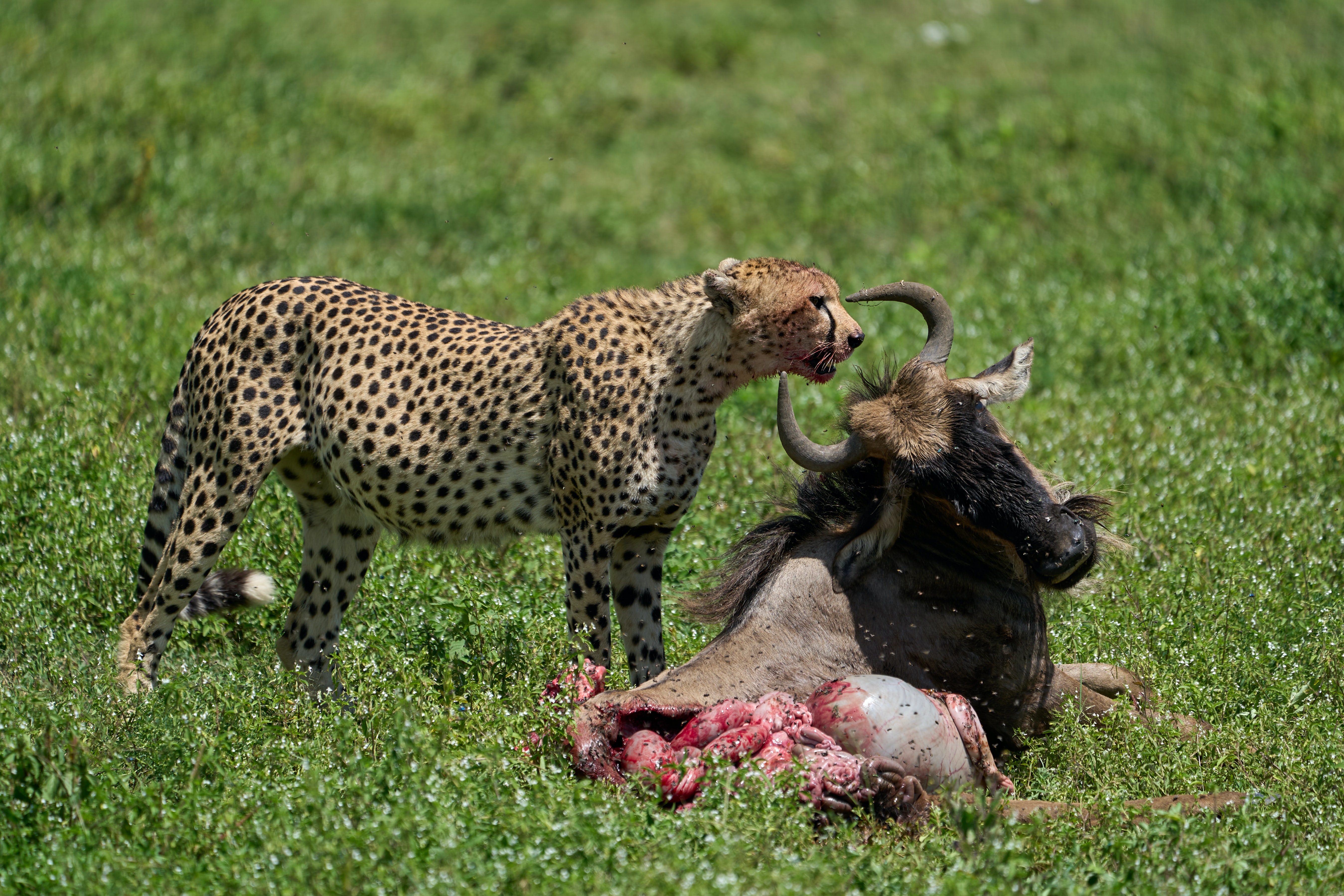 Cheetah eating wildebeest.