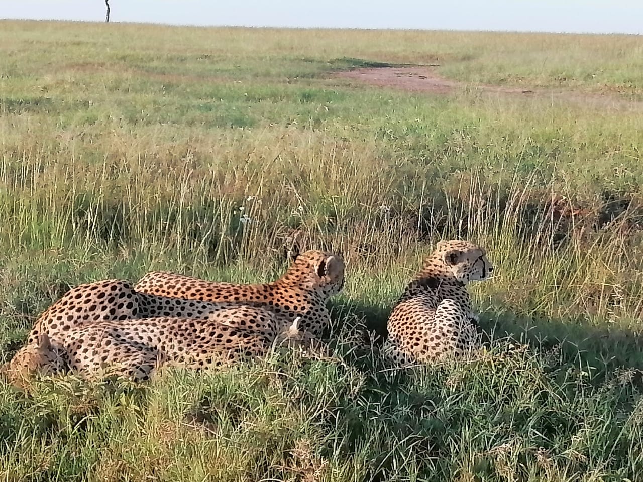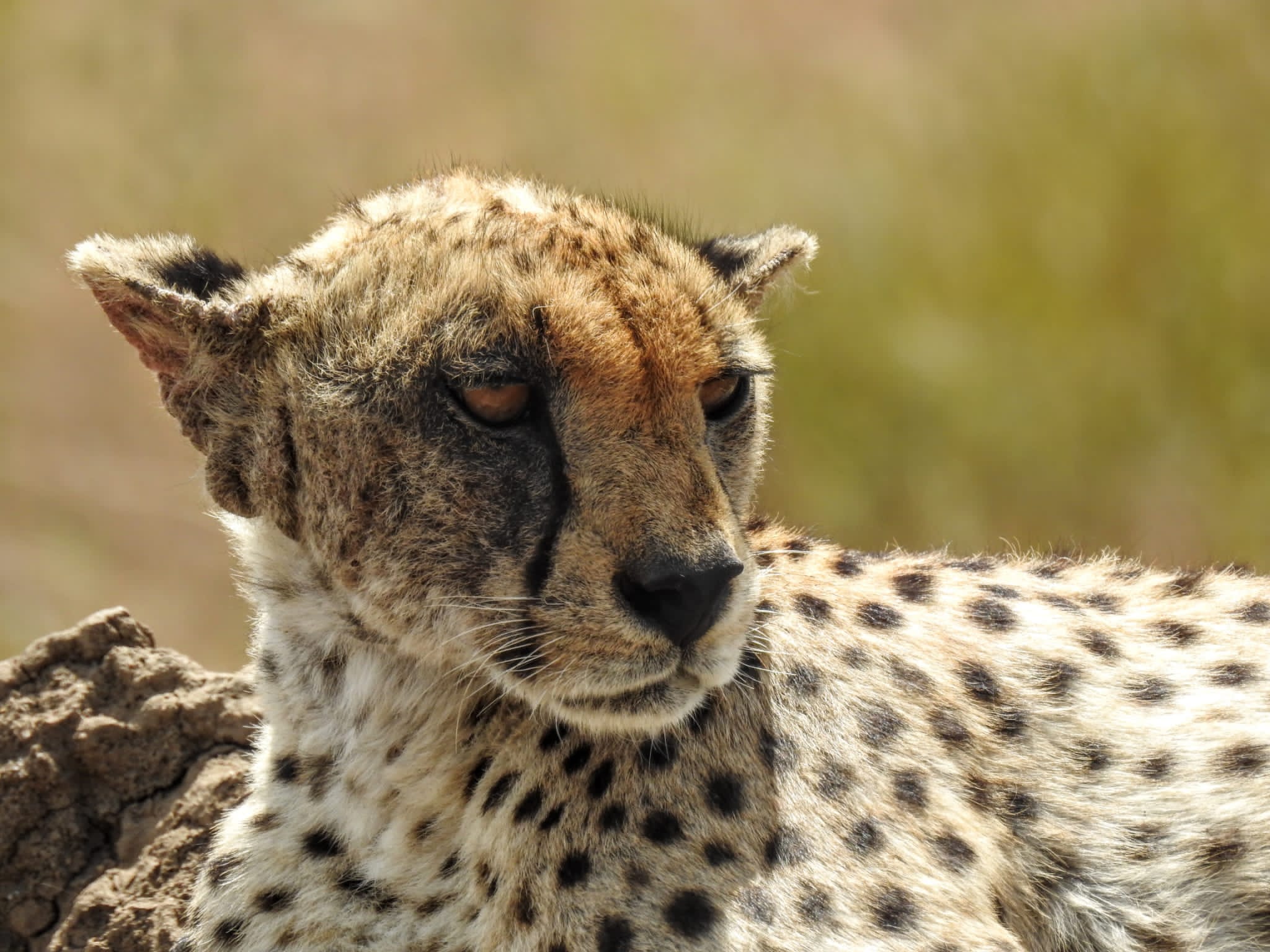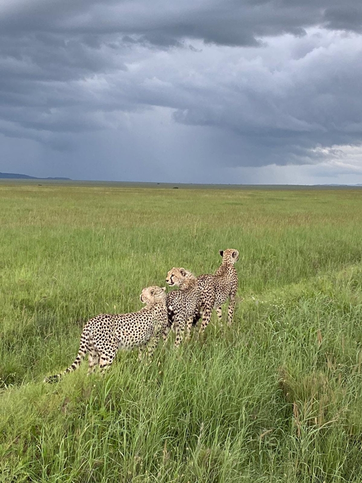 Reaching speeds of 115 kp/h (70 mph), the cheetah is the fastest land animal. It can go from 0 to 100 kph (60 mph) in just three seconds. The cheetah is the smallest of the three big cats in Africa, with the lion and leopard being the other two cats. Unlike the lion and leopard, it cannot roar. But it can purr and mew like its domestic counterparts. Another distinguishing characteristic of the cheetah is that it is a diurnal hunter, which means it hunts during the day. It prefers tall grass savannahs where it can silently watch and stalk its prey. The cheetah is a carnivore and it eats a wide range of prey, with a strong preference for various types of antelope. After a gestation period of 90 to 98 days, female cheetahs typically have a litter of three cubs (although up to nine is possible), and live with them for one and a half to two years. The cheetah's mortality is very high during the early weeks of its life; up to 90% of cheetah cubs are killed during this time by lions, leopards, hyenas, wild dogs or even by eagles.