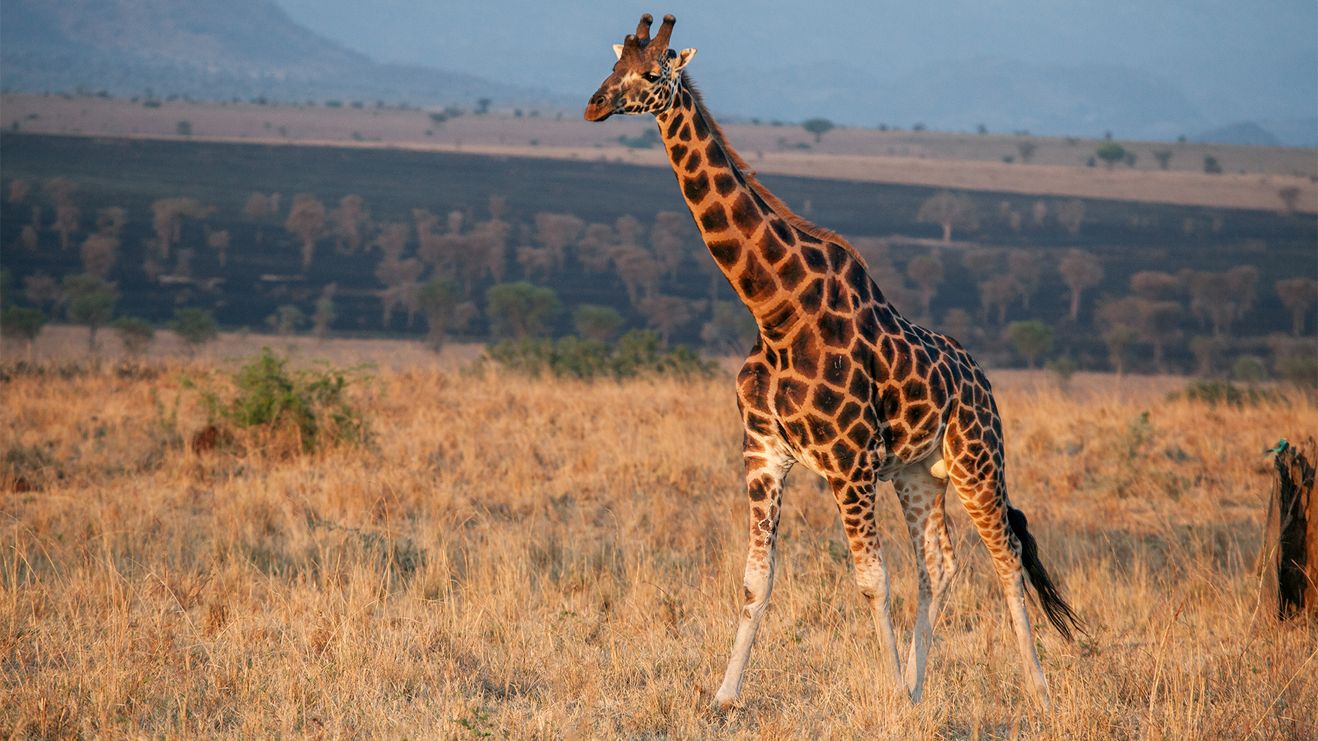 The giraffe is the largest ruminant animal and the tallest land mammal, with an adult giraffe neck averaging a staggering 1.8m / 6ft in length! The same goes for an adult giraffe's legs. The average lenght is around 1.8m, making its legs taller than most humans. The main diet of the giraffe is tree leaves and buds. It has a prehensile tongue that is dark blue-black in color and is extremely long (45-50 centimeters or 18-20 inches). This construction allows the giraffe to nimbly wrap its tongue around the spiny thorns of the acacia tree and deftly remove the leaves without any harm to its mouth or tongue. Nine sub-species of giraffe are recognized, including the South African giraffe, Rothschild’s giraffe and Masai giraffe. The gestation period for a female is 14 months and they normally give birth to one young.
