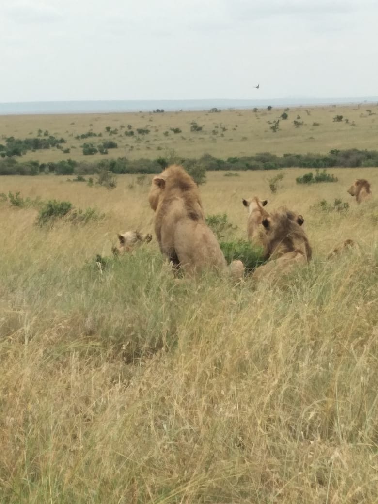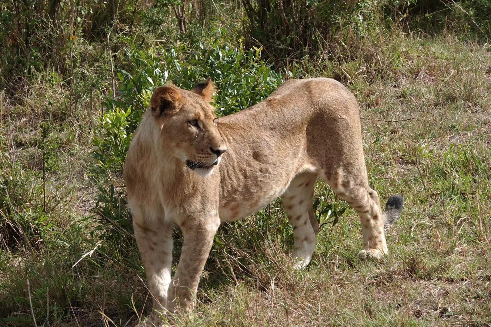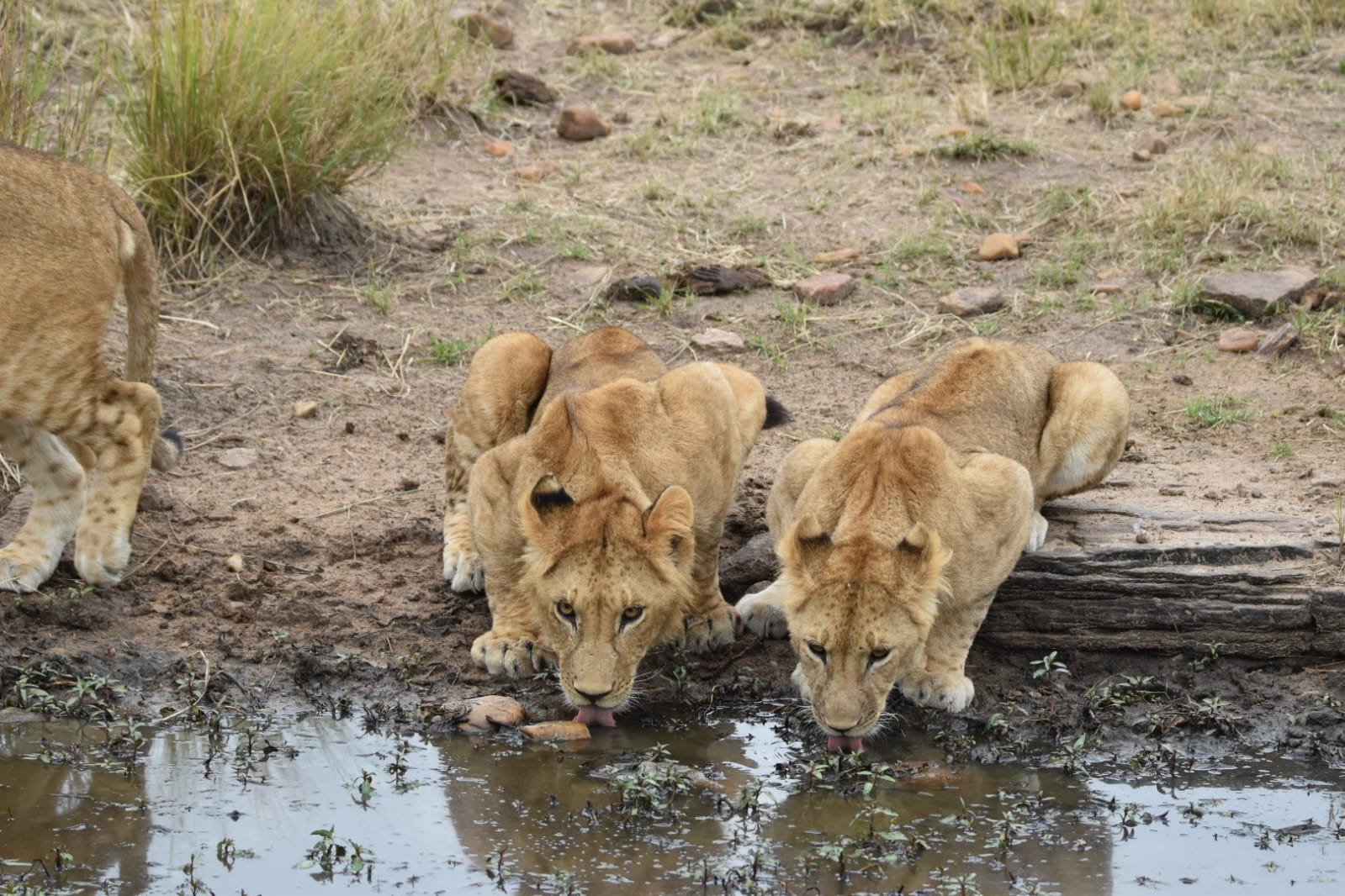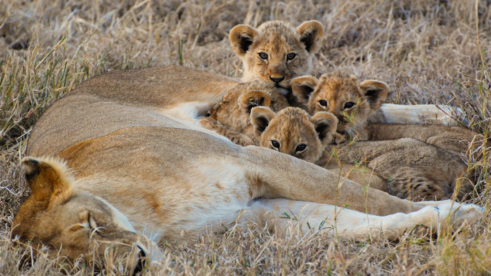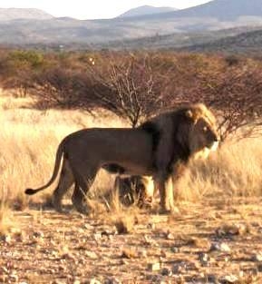 The lion is related to the jaguar, leopard and panther. After the tiger, it is the largest big cat. Unlike the other big cats, which are primarily solitary beasts, lions live in groups called prides. Male lions are easily distinguished from females by their large manes, which can vary in color from a light beige color to a very dark brown color. Lions are carnivores and nocturnal hunters. The females do the majority of the hunting and will work together to bring down large animals such as wildebeest, buffalo, crocodiles, zebra and even a weakened elephant. The gestation period of a female lion is around 110 days, with two to four cubs being the average number for a litter. Male lions will leave the pride at around three years of age, while females will stay with the pride into which they were born their entire lives.