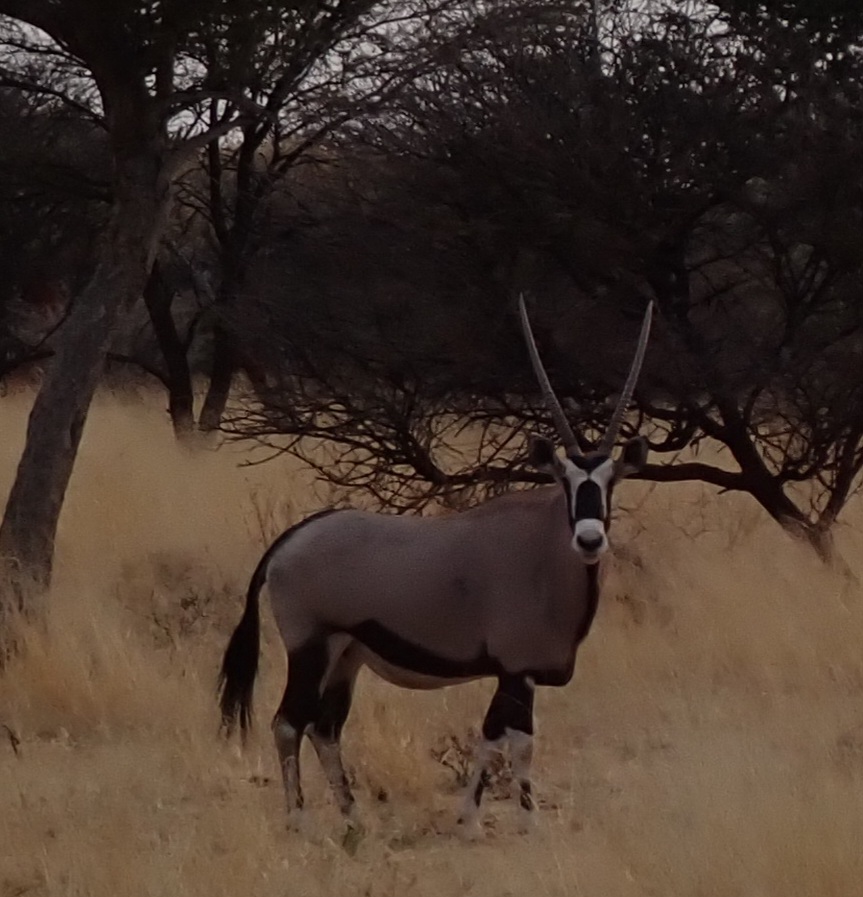 Two species of oryx can be found in Africa: Eastern African oryx and South Africa oryx, also known as gemsbok. Both are part of the Genus: Oryx. Oryx prefer semi-arid to arid conditions and can do will in areas with little precipitation. Oryx feed on and can digest desert plantation, such as thorny shrubs, wild melon and coarse grasses. They are also well-adapted to deal with extremely hot climates. They are able to cool the blood flowing to their brain via capillaries in their nose as they breathe in oxygen. During warmer months, oryx will dig shallow depressions in shady areas, where they will rest until temperatures drop. They will change their feeding patterns to eat when plants have most moisture—early morning and evening. The oryx is said to have an excellent sense of smell and can detect rainfall from over 80 km away, which the herd will then follow. Gestation period is around 8 months.